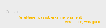 Sie sind auf der Suche nach neuen Wegen, um Ihre berufliche und persönliche Situation zu klären, zu verbessern und zu erhalten? Sie suchen nach passenden Antworten auf die Fragen: "Was will ich erreichen? Wie kann ich das schaffen? Wie soll ich mich entscheiden? Wie gehe ich mit der neuen oder schwierigen Situation um?" Für Ihre Herausforderungen und Ziele entwickeln Sie im vertraulichen Gespräch passende Strategien und finden umsetzbare Lösungen. Sie überprüfen Ihre Einstellungen und Verhaltensweisen und sichten Ihre Möglichkeiten. Dabei können Sie sich neu ausrichten, einen realistischen Blick auf Ihre Aufgaben gewinnen und Ihre Handlungskompetenz ausweiten. Coaching unterstützt Sie dabei, Ihre Fähigkeiten und Möglichkeiten bewusst, verantwortungsvoll und reflektiert einzusetzen und weiterzuentwickeln. Anlässe für Coaching Sie wollen